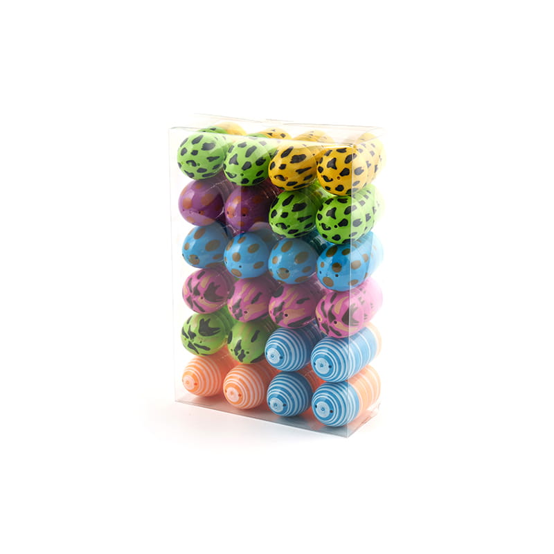Dette påske trykte æg er lavet af miljøvenligt PP-materiale af høj kvalitet, sikkert og ikke-toksisk, kan bruges uden bekymringer. Hvert æg kan udskrives med alle slags smukke mønstre, såsom humørikoner, striber og andre ønskede mønstre, farverne er lyse og ikke lette at falme. Bolden er fuld og rund, med en delikat håndfeel, der får folk til at elske den. Uanset om som feriedekorationer eller gaver, kan denne påskeprintede æg tilføje en unik ferieatmosfære og glæde.